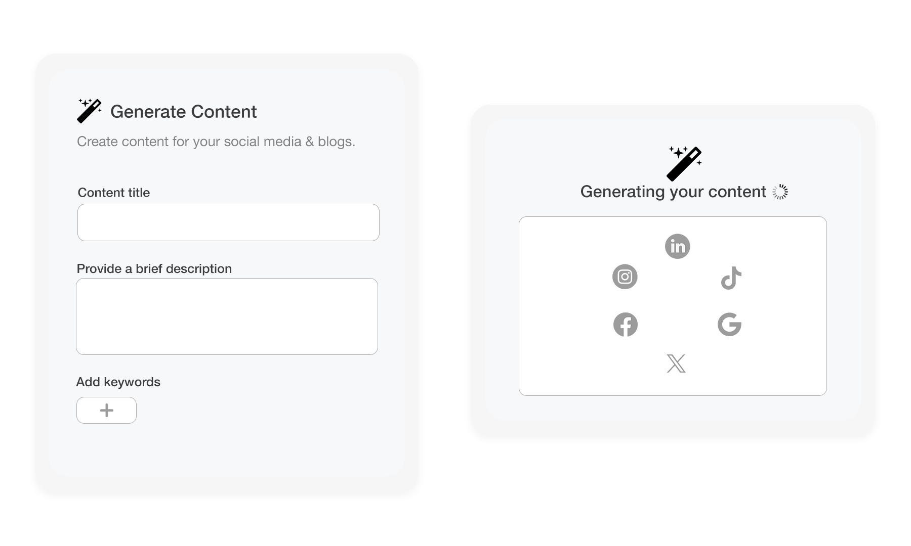 Stuck on what to say or share on social media? Content AI helps you create compelling copy and visuals in minutes, perfectly aligned with your brand. No writing or design skills required.